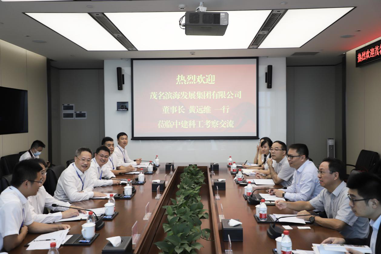 在中建科工集團,黃遠維一行拜會了中建科工集團副總經理周發榜,雙方就進一步深化合作等事宜進行了充分溝通交流。黃遠維表示,中建科工集團是中國最大的鋼結構產業集團、國家高新技術企業、國家知識產權示范企業,在鋼構領域擁有突出技術優勢與濃厚的匠心文化。茂名濱海新區以“港、業、城”三位一體為戰略目標,新興未來城市理念對企業綠色低碳產品有著廣泛的應用市場。他希望未來雙方在鋼結構綠色低碳建筑等領域能有進一步的合作。