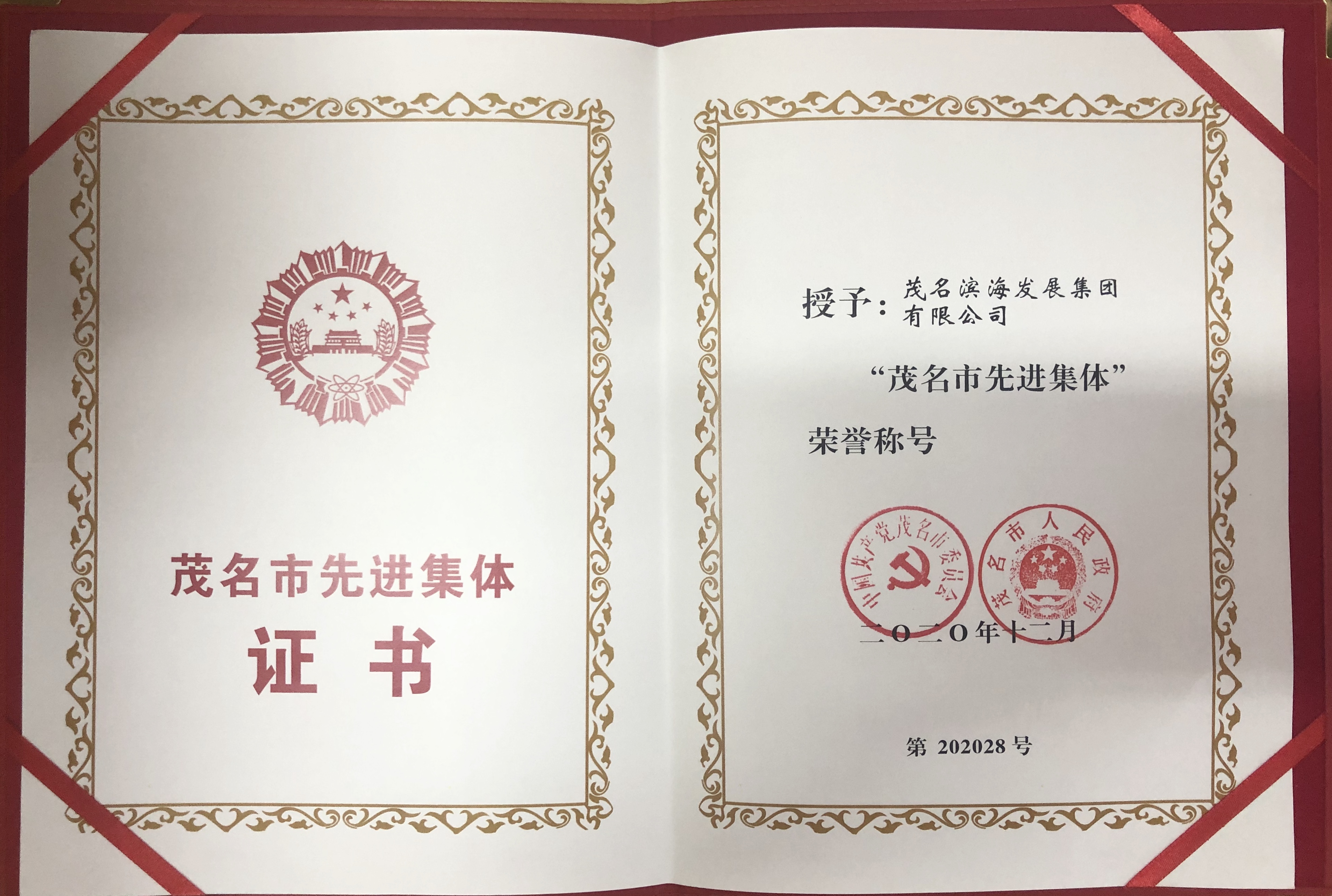 茂名濱海發展集團有限公司榮膺“2020年茂名市先進集體”稱號