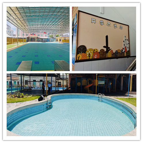 博賀鎮(zhèn)中心幼兒園創(chuàng)辦于1999年。園區(qū)建筑總占面積為3109平方米,園舍建筑面積1871平方米,戶外活動場地2205平方米,其中綠化面積1241平方米,綠化覆蓋率40%。園區(qū)環(huán)境優(yōu)美,園舍布局合理。園區(qū)建有綜合樓一幢,分別設有園長室、衛(wèi)生保健室、圖書室、音樂室及各種活動室。戶外設有游泳池、玩沙池和采用西班牙橡膠材料建成的運動場。今年暑假的園區(qū)擴改建翻新工程涉及幼兒園園區(qū)陳舊、廢棄校舍的拆除;戶外活動操場上方500平米不銹鋼遮陽棚的安裝;園區(qū)內校園文化走廊的翻新;戶外活動室的擴建等內容。擴建翻新工程完成以后,不僅能營造優(yōu)雅的教學環(huán)境,增添校園文化的多樣性,還為校園安全提供了更多的保障。