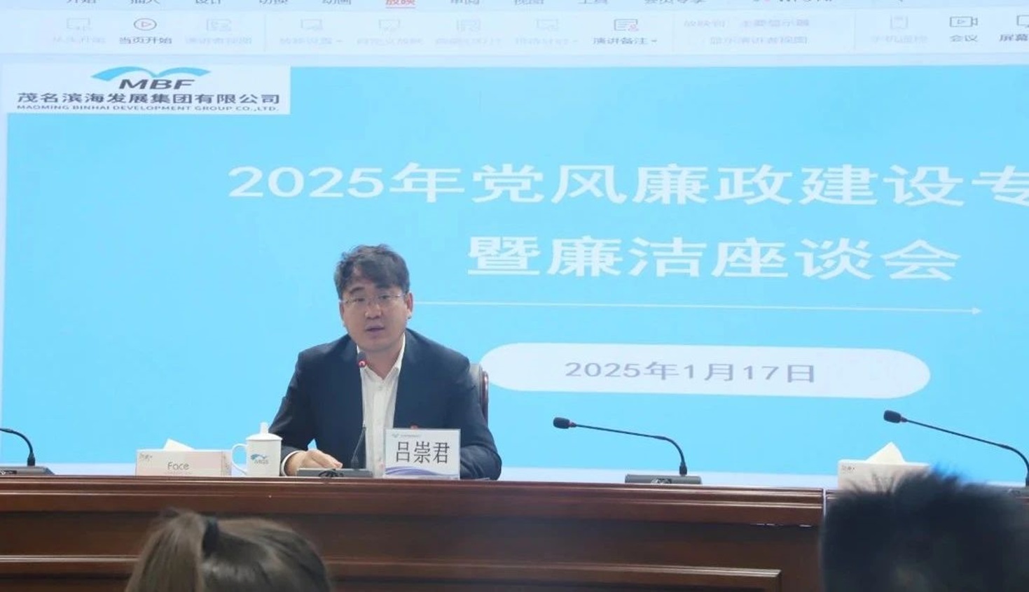 2025年1月17日下午,茂名濱海發(fā)展集團(簡稱集團)召開黨風廉政建設專題會暨廉潔座談會,旨在進一步加強新時代國有企業(yè)廉潔文化建設,推動集團高質(zhì)量發(fā)展。集團黨委書記、董事長呂崇君做集體廉潔談話,集團黨...